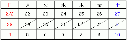 斜線日が休診となります。